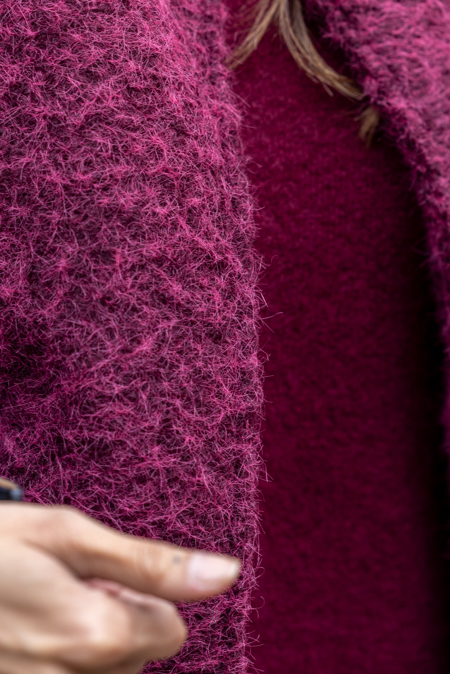 Porté avec le pull Aurore bordeaux et la jupe Ezra.